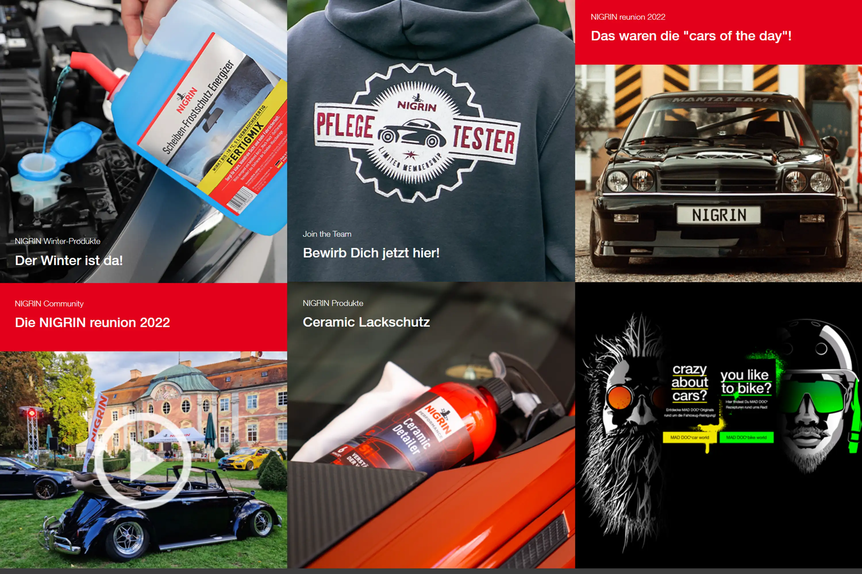 NIGRIN ist ein Platzhirsch für Autozubhör, vom Felgenreiniger bis zu Desinfektionsmitteln. Gemeinsam mit sence begleiten wir den Kunden seit mehreren Jahren.